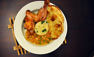 ...with Cilantro and Onion Couscous, Spinach Paneer and Grilled Garlic Naan