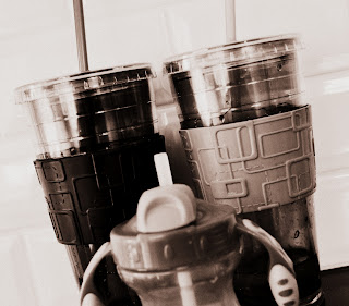 The kitchen was clean, everything put away (I love nothing more in my kitchen then when its bare and clean) All that sat out was our water bottles. Mine, Mr sixtyone45 and Little's. There they were on the countertop. A wee hydration vehicle family. Two bigs and a little. And I thought, in a nutshell, this is my life...