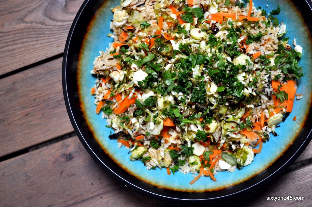 Warm Basmati Rice Salad with Roasted Brussels Sprouts.