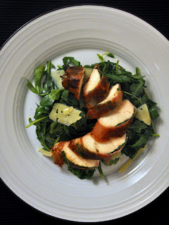 - Serve on a bed of arugula tossed with salt and pepper, oil and vinegar and shaved parmesan.
