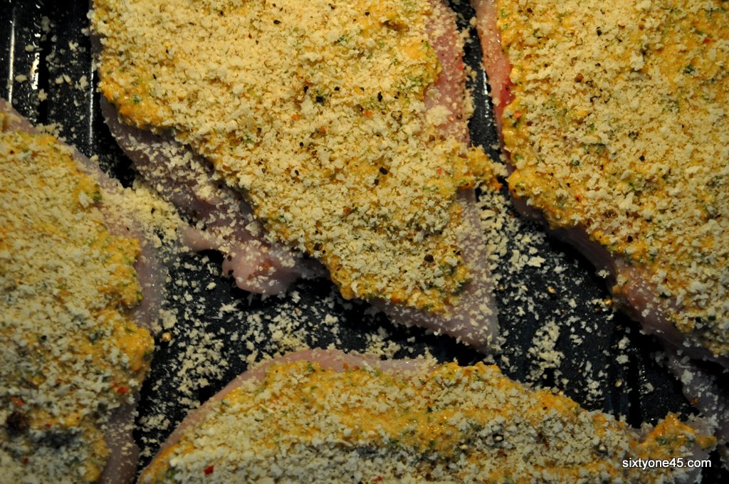 5. I made this for dinner one night in an attempt to clean out the fridge. Tossed onion, cilantro, parsley, leftover queso fresca cheese, tomato sauce and some fresh basil into the processor. Whipped it up, painted it on some chicken breasts, sprinkled with panko and into the easy bake oven. Served with some red and white quinoa and some red leaf lettuce salad. Kinda quite yummy.