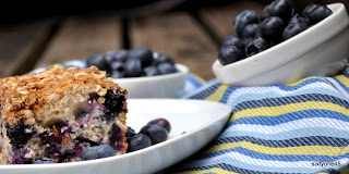 I picked the blueberries. I supplied the kitchen. I dropped a few hints. I left the house for 24 hours. And voila....a Blueberry Buckle Cake was waiting on my counter when I returned. Magic.