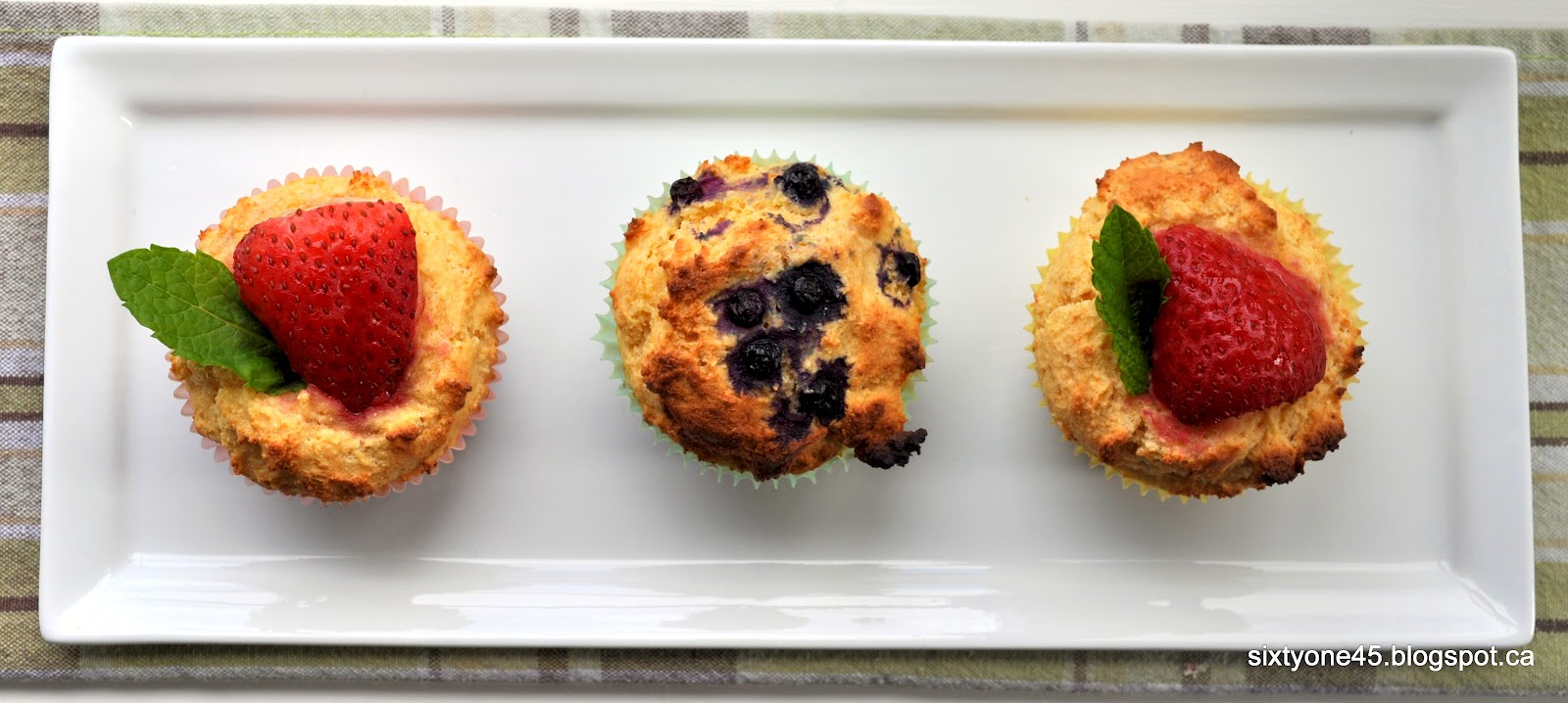 These muffins were were a heavier cake version. The coconut flour adds not only nice flavour but a big dose of extra fibre. They look a little overdone but I figure just like with meat, brown = flavour. Little liked them (but he likes everything) and Mr. sixtyone45 popped back a couple so in our house that is a successful recipe.