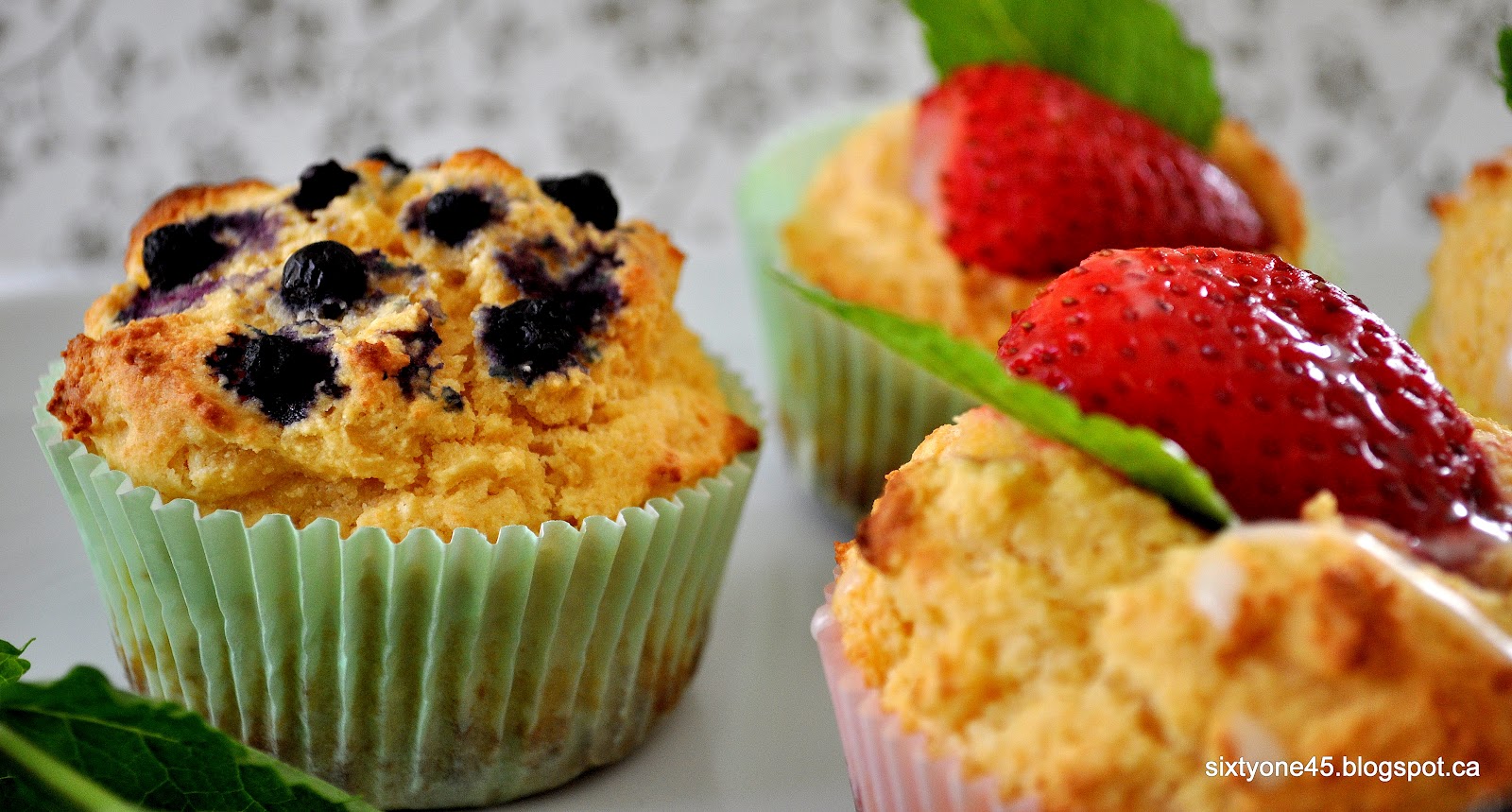 Strawberry & Blueberry Coconut Cake Muffins with Lemon Glaze