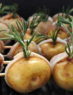 Smoked BC New Nugget Potato Skewers with Bacon & Rosemary.
