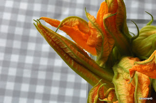 The first time I recall having had squash/zucchini blossoms was at my mother in law's house . Fresh from her garden, I had no idea they were edible. (in hindsight a poisonous flower on an edible vegetable was probably not my brightest assumption) I actually just assumed they were what was required to make a zucchini. Kinda like tomatoes. Nope. Turns out, some vegetables mirror real life. (also turns out if you pick tomato flowers and eat them, you won't get any tomatoes).