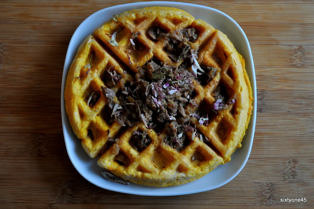 Pumpkin Ale and Sweet Potato Waffles with Pork Maple Sauce